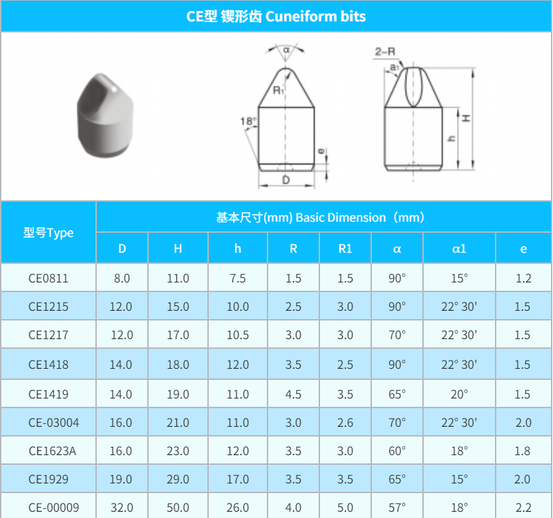 Has superior wear resistance and impact toughness, and has higher drilling speed than similar products. Ball tooth series bit passivation service cycle is long, its wear life is about